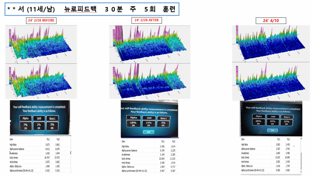 This case study is an analysis report based on the brainwave changes before and after training of an 11-year-old boy. The boy was suffering from poor concentration and sleep problems, and received 30-minute training five times a week for a total of two months.